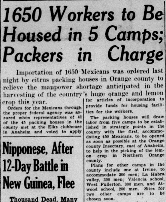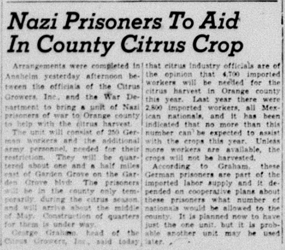 During World War II, Nazi war prisoners were taken to camps (including one in Garden Grove) and “hired” out to lower growers.