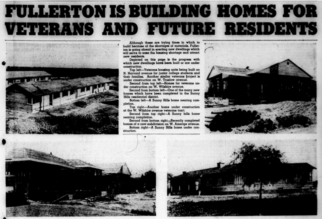 The Local History Room of the Fullerton Public Library has microfilm from the Fullerton Daily News-Tribune newspaper stretching back to 1893. I am in the process of reading over the microfilm, year by year, to get a sense of what was happening in the town over the years, and creating a mini archive. Here is a compilation of stories from the 1940s.