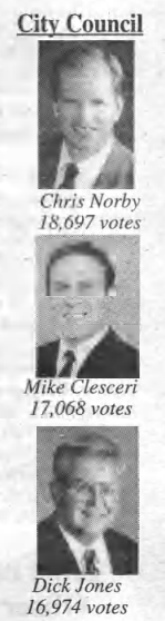 In the 2000 local election, Chris Norby, Dick Jones, and Mike Clesceri were elected to City Council. All were Republicans.