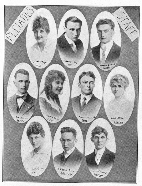 Looking through these old yearbooks is a window into the styles and attitudes of the past. I present here some snapshots from the Pleiades from the years 1909-1920.