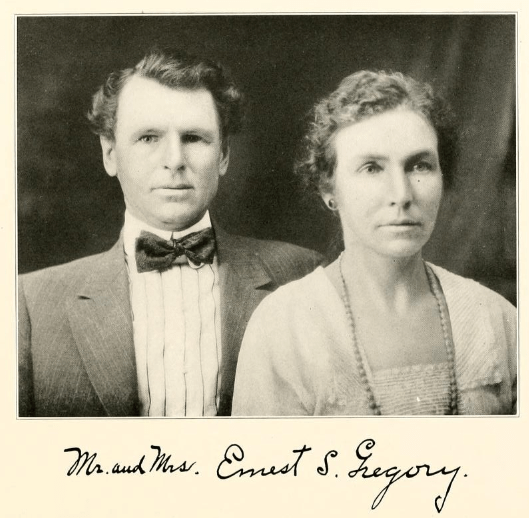 Ernest Gregory was born in 1881 in Chesterfield County, Virginia and raised on a farm. At age 19 he moved to Fullerton, where he learned carpentry with contractor C.H. Smith. He also studied at Throop Polytechnic Institute at Pasadena, and took a course in the International Correspondence School in Scranton, PA., in mathematics and drafting, for which he received a diploma.