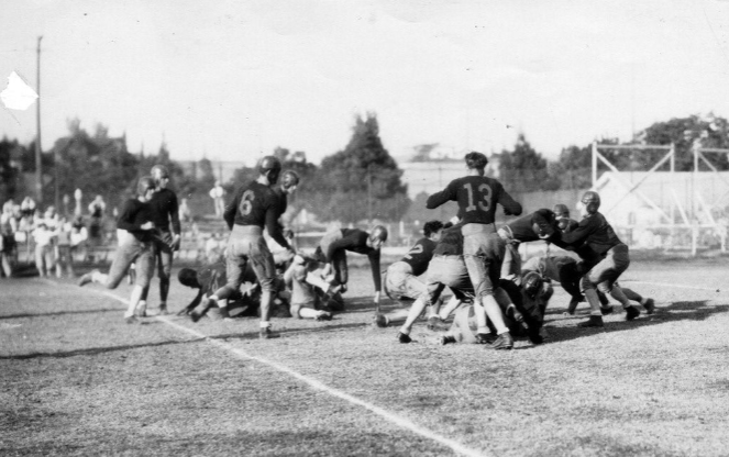 Turkey Day was a Thanksgiving Day football game which was traditional between Fullerton Junior College and Santa Ana Junior College…It was generally the high point of the season for these two schools. I believe it was about 1938 that we began choosing a Turkey Day Queen.