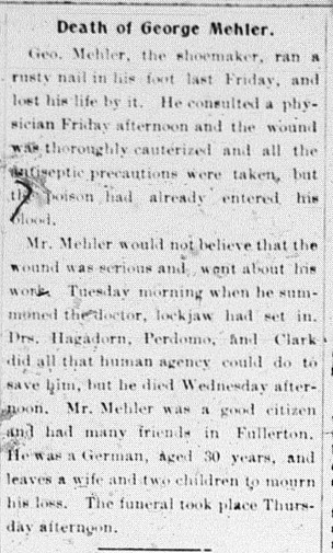 My latest research has taken me to the microfilm archives at the Local History Room of the Fullerton Public Library, in which I am reading, year by year, the archives of the local newspaper, The Fullerton Tribune. I have just finished reading the papers from 1895, and here’s what was happening both nationally and locally in 1895…
