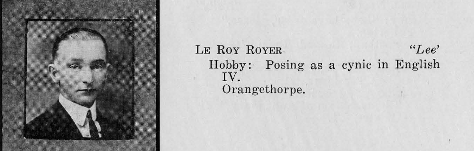 LeRoy Royer also enlisted during World War I and served in the motor transport service in France, and was stationed at such places as Tours, La Rouchelle, Nantes, and St. Nazaire.