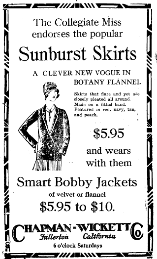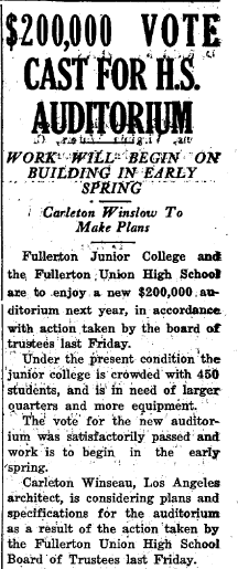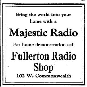 The Fullerton College web site contains digital archives of the Weekly Torch (now called The Hornet), Fullerton College’s newspaper, stretching all the way back to 1923. As part of my research into local history, I’ve begun going through these archives, year-by-year, because newspapers are information-rich sources of local history. Below are some articles and ads from the years 1926-1928, with a bit context…