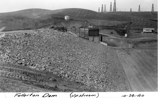 Ironically, it was during the Great Depression that most of Fullerton’s massive flood control projects were built, as part of FDR’s New Deal: “It was during and right after the Depression—from ’33 to ’42—who we had relief labor, we started to try and control the channels by lining them. Break Creek Channel was lined and east Fullerton Creek Channel was lined with concrete. And then two dams (Fullerton and Brea) were built…That was the salvation to the city on flooding.”