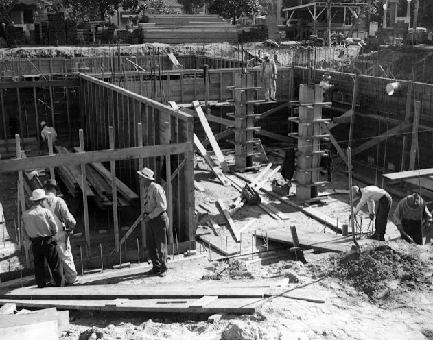 As City Engineer, Herman supervised many of the WPA projects. He recalls supervising 800 local workers to do public works—cleaning out storm channels, renovating Hillcrest Park, planting trees along Harbor, building the baseball field and grandstand at Amerige Park. Local buildings built with WPA money include City Hall (now police station), Fullerton College, the Library (now Fullerton Museum Center), and others.