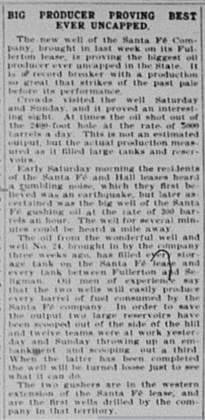 The Union Oil Company alone was piping 30,000 barrels a month from its Fullerton fields to San Pedro Harbor, where it was shipped north for refining.