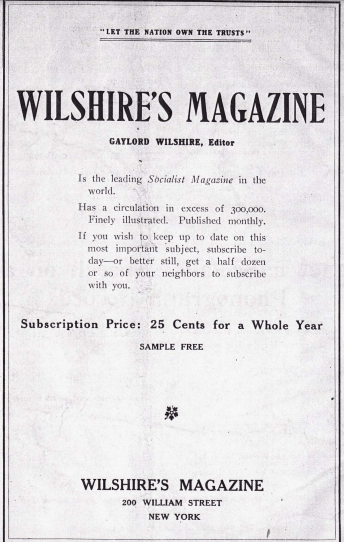 “Wilshire built the circulation of Wilshire’s Magazine to an impressive 425,000 copies per issue,” Starr writes. “During the Progressive Era, Wilshire’s Magazine was the most influential Socialist journal in the United States, and its subsidiary publishing house, the Wilshire Book Company (which also sponsored a Socialist Book Club), introduced a wide variety of Socialist authors, European and American, to American audiences.”