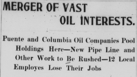 At this time, as noted above, a number of oil companies, large and small, were drilling in the Fullerton fields. Over time, these would be consolidated or merged into larger companies.