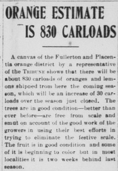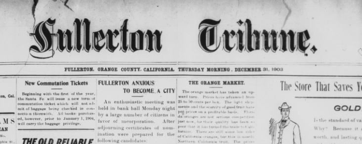 Fullerton would vote to officially incorporate in 1904. Stay tuned for my highlights from 1904 Tribune headlines.