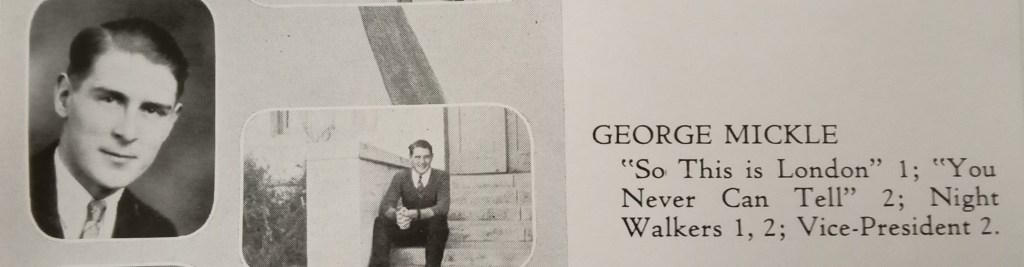 George Mickle graduated in 1926 from Anaheim High School, and attended Fullerton College from 1926-1928.