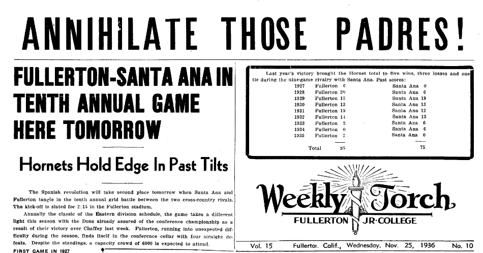 He remembers the annual Thanksgiving Day football game between Fullerton and its rival Santa Ana, which always drew a huge crowd and would sometimes get rowdy.