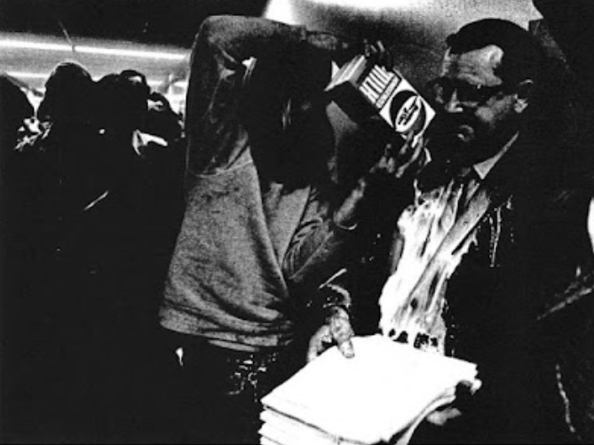 Around 11pm that night, with students still occupying the building, the Fullerton Police Tac Squad arrived, and the students fled. According to Epstein: “The police marched the length of the corridor, batons chest high, and came to a halt at the other end. Then, vivid in their black uniforms and plastic face shields, they stood at attention for 20 minutes in the empty neon-lighted, paper-littered hallway.”