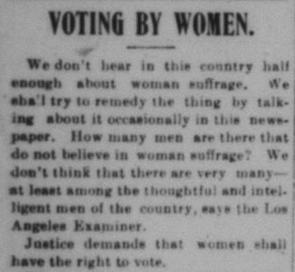 Women could not vote in 1906. The 19th Amendment would not pass until 1920. In the meantime, some editorials appear in the Tribune on the question of women’s suffrage.