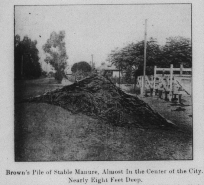 A Mr. Brown was ordered to remove his massive pile of manure from the center of town.