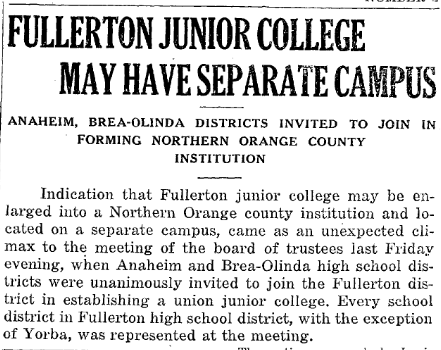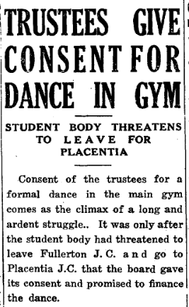 Fullerton College’s weekly newspaper was called The Torch. The college library has digital archives of the Torch going back to 1923 (the college was founded in 1913). Here are some clippings from 1929: