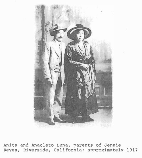 Her parents immigrated from Mexico from the state of Guanajuato and settled in the Casa Blanca barrio in Riverside around 1917. Her parents had nine children, all born in Riverside, but only three lived long enough to be married. The rest of them died when they were small.