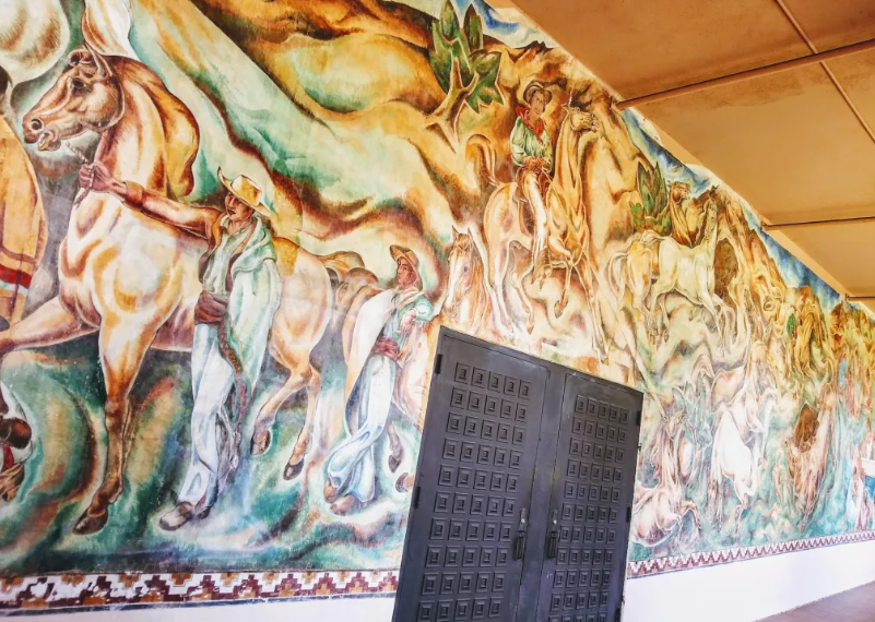 He witnessed the painting of the “Pastoral California” mural on the side of the high school auditorium., which was also painted over in 1939.