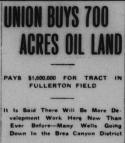 The Union Oil company (which later became Chevron) was buying up land in the oil-rich fields north of Fullerton.