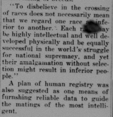 In the early 20th century, there was an emerging pseudo-science called eugenics which was the basis for racist beliefs and practices, such as laws which prevented interracial marriage.