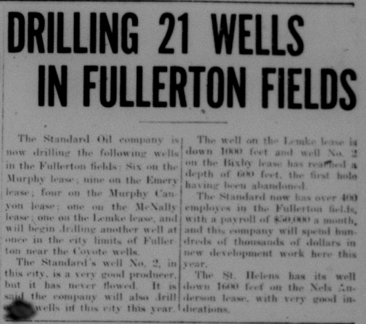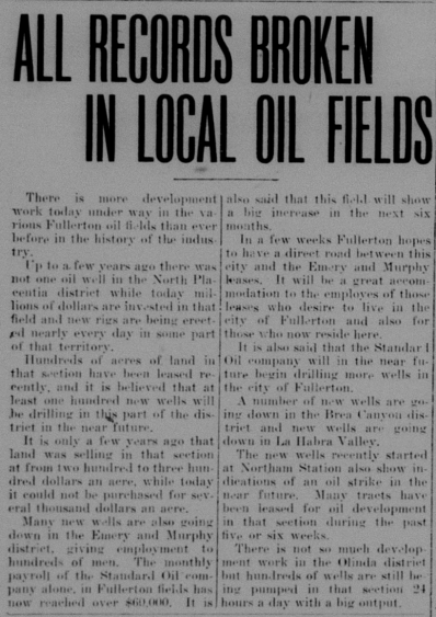 The Local History Room of the Fullerton Public Library has microfilm from the Fullerton Tribune newspaper stretching back to 1893. I am in the process of reading over the microfilm, year by year, to get a sense of what was happening in the town over the years, and creating a mini archive. Below are some news stories from 1914.