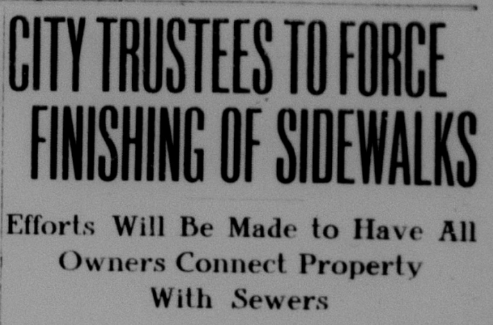 While the city or county paid for road improvements, business owners were responsible for paving the sidewalks outside their stores downtown.