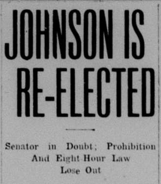“When we assumed control in 1911,” Johnson said, “the S.P. [Southern Pacific railroad] company regulated the state; now, the state regulates the company…We have been endeavoring during these four years to provide the weapons with which the electorate may defend itself in case the corporations should ever again get control of state affairs. You have these weapons in the initiative and referendum…I say to you that government has a higher purpose than to make men richer. Its chief concern should be the social welfare–to place in the system of laws the hearts and conscience of the people…The reduction in rates for freight, electricity and phone service made by the railroad commission during this administration will mean a saving of over $7,000,000 per year to patrons of these public utilities. In view of these figures, I ask you, does it pay to own your own government?”