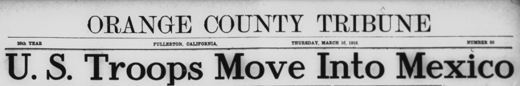 “Ignoring the plea of Mexico that the American invasion be delayed, 4,500 United States cavalry and mounted infantry crossed the border from Columbus, NM today,” the Tribune states. “The entire object of the swoop is an effort by superior speed to circle and capture Villa, who has been located hiding in the mountain fastness.”