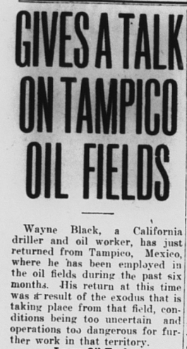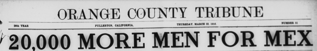 The above article states: “That secret recruiting of Mexicans for the Mexican army has been going on in Fullerton for the last week became known today. Half a score of Mexicans are known to have left town and others are said to be preparing to leave.