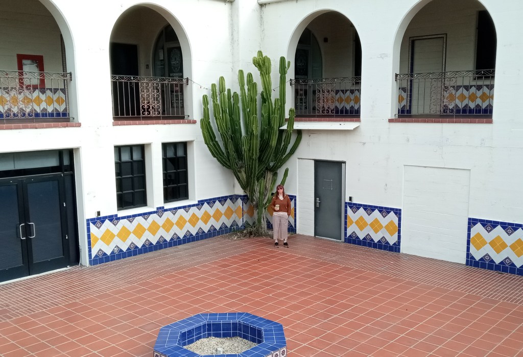 For this series, I compare a historic photo of Fullerton with a contemporary one from approximately the same angle. Below are two photographs of the sunken patio of what was originally City Hall at the northeast corner of Commonwealth and Highland Avenues–one of the patio being built in 1940 as a WPA project, and the other from 2023. The building is now the Fullerton Police Station.