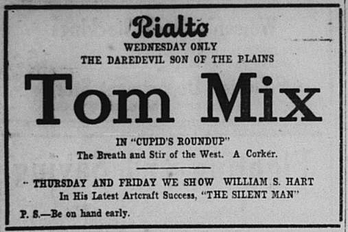The Tribune ran ads for features shown at the Rialto. Here are some: