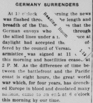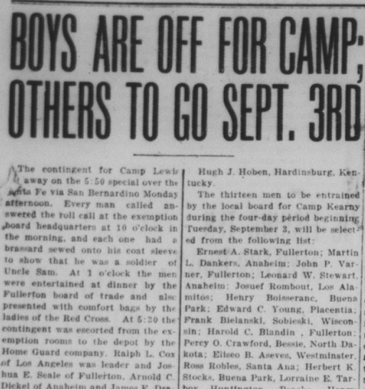 The Local History Room of the Fullerton Public Library has microfilm from the Fullerton Tribune newspaper (which became the Orange County Tribune in 1908) stretching back to 1893. I am in the process of reading over the microfilm, year by year, to get a sense of what was happening in the town over the years, and creating a mini archive. Below are some news stories from 1918.