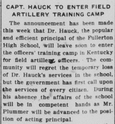 High School principal E.W. Hauck enlisted, or was drafted.
