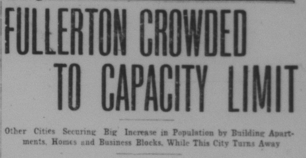Fullerton’s population was growing, and there was a housing shortage, so there was much new construction. The 1920s would bring a big housing boom to Fullerton. The Board of Trade established a “housing fund” to finance construction of new housing.