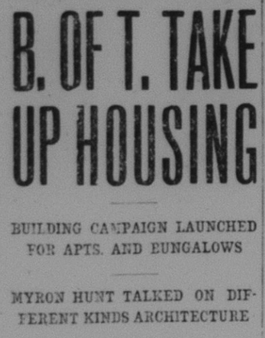 “The Housing proposition is the most important problem which confronts the city today. We not only need good houses but we need business blocks, as people who desire to engage in business here are turned away every day,” the Tribune reported.