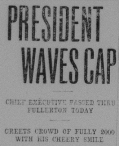 Many Fullertonians gathered to watch president Woodrow Wilson’s train pass through town.