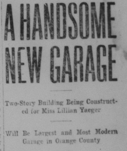 New construction downtown featured apartments and a bungalow court, plans for a new Masonic Temple, a new business block, and a new garage for Fullerton’s pioneering auto dealer Lillian Yeager.