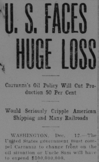 In international news, World War I was over, but the United States was seriously considering war with Mexico due to the destabilizing effects of the Mexican Revolution, president Carranza’s movement to confiscate oil lands owned by U.S. companies in Mexico, and the kidnapping of American industrialist William O. Jenkins by Mexican Revolutionary forces.