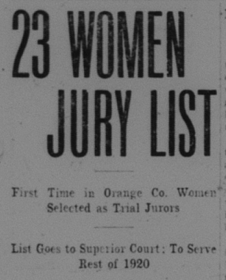 1920 was also the first year women were allowed to serve as trial jurors in Orange County.