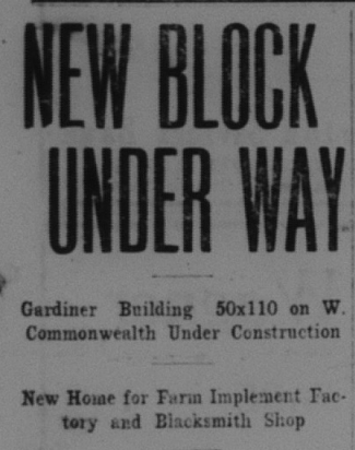 Unfortunately, part of this “progress” meant destroying old buildings, such as the Henderson Blacksmith shop, which was one of the oldest shops in town.
