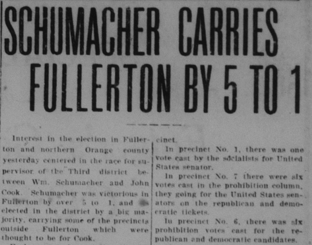 As I mentioned earlier, 1920 was an election year, and there was much local interest. During the California primary, there was support for Republican Herbert Hoover which took the form of a Fullerton Hoover Republican Club.