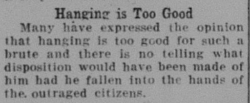 Because the murderer was Black, many local citizens wanted to lynch him when he was caught. This was the 1920s, when lynchings were not uncommon.