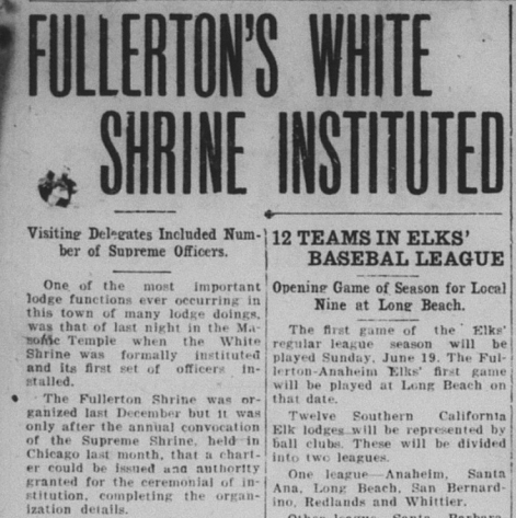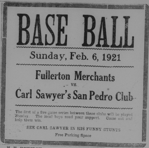 In sports news, baseball was quite popular locally. The Indians mentioned below do not refer to the Fullerton High School Indians, but rather the Indians of the Sherman Indian School in Riverside, which still exists today.