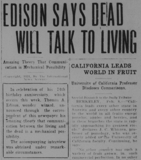 Inventor Thomas Edison made the crazy claim that he could use a machine to commune with the dead.