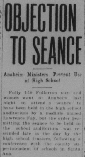 Speaking of communing with the dead, local ministers successfully blocked the use of Anaheim High School for a seance.