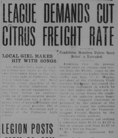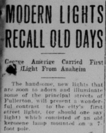 The Local History Room of the Fullerton Public Library has microfilm from the Fullerton Tribune newspaper stretching back to 1893. I am in the process of reading over the microfilm, year by year, to get a sense of what was happening in the town over the years, and creating a mini archive. Below are some news stories from 1921.