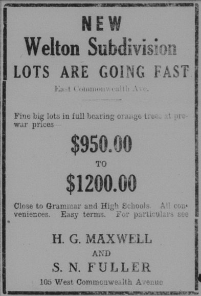 In 1921, Fullerton was growing quite rapidly. The population was 6,600, a big increase over the past two years.