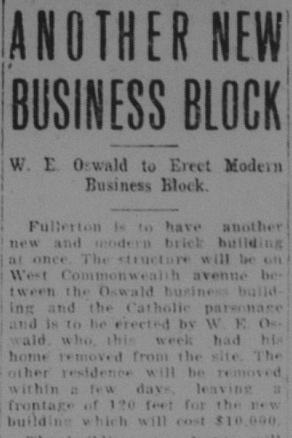 And here are descriptions of some of the new business blocks that were built downtown, along with some photos courtesy of the Fullerton Public Library Local History Room.