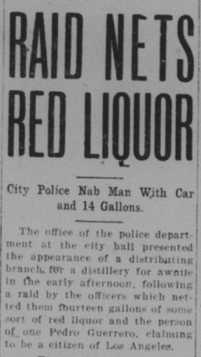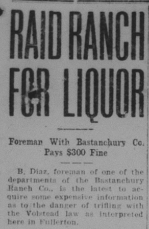 The noted Bastanchury family had made their own wine for years. They were raided and some charged with violating the dry law.